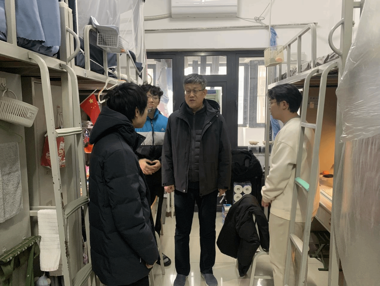 “家在哪里?”“假期过得怎么样?”“返校途中是否顺利?”“新学期有什么计划?”郑清春关切地询问同学们的假期生活、返校路途情况及新学期的学习打算,并实地查看宿舍设施配备、环境卫生等情况,倾听同学们的意见和建议。他勉励大家要深刻认识到自身肩负的时代使命,珍惜宝贵的大学时光,在新学期里潜心向学、学有所获、学有所成,努力成长为堪当大任的栋梁之才,将个人理想融入国家发展的宏伟蓝图。恰逢考研成绩刚刚公布,郑清春细致询问毕业班学生的考研成绩、复试准备情况,耐心倾听同学们的困惑与诉求,结合行业发展趋势,对复试准备、调剂选择等方面给予针对性指导和建议。他还详细了解毕业生们的求职进展和现阶段遇到的困难,鼓励大家主动把握就业机遇,结合自身专业优势找准定位,学校将全力为毕业生就业提供支持和保障。