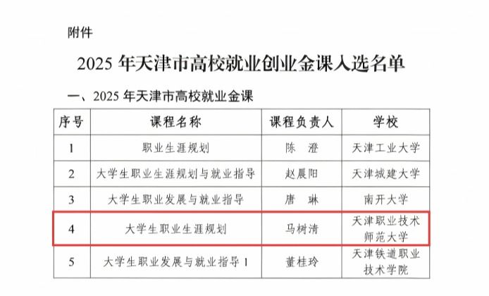 我校《大学生职业生涯规划》课程入选2025年天津市高校就业金课