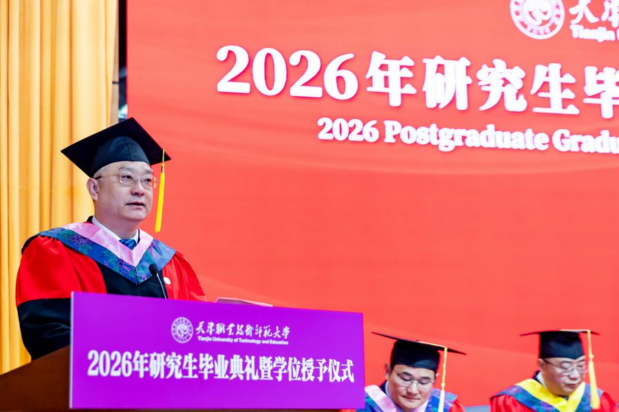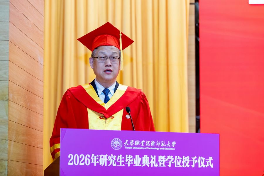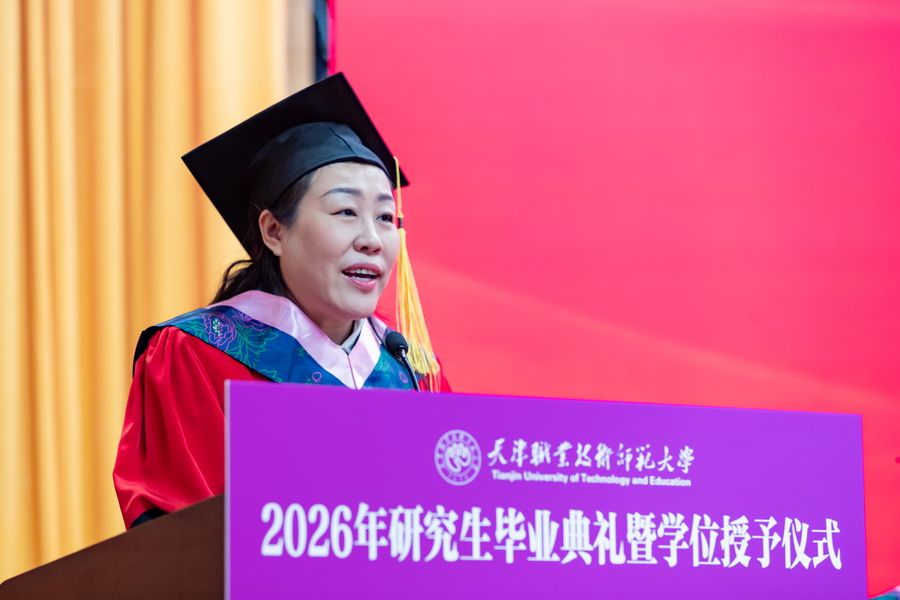 郑清春用“以技立身”“以教立心”“以创致远”深情寄语全体毕业研究生:一是以技立身,锻造大国工匠的硬核实力,希望大家永葆“择一事终一生”的专注,涵养“干一行钻一行”的精进,在技艺的巅峰不断攀登;二是以教立心,涵养立德树人的师者情怀,希望大家铭记“爱国、敬业、团结、创新”的校训精神,用扎实的学识启迪学生,用精湛的技能示范学生,用高尚的人格感染学生,成为学生成长路上的引路人和筑梦者;三是以创致远,激发敢为人先的澎湃动能,希望大家主动拥抱变革,打破思维定式,在技术迭代中捕捉机遇,在产业转型中开辟赛道,在交叉融合中孕育新机,以创新为桨、以实干为帆,在时代浪潮中奋楫前行。